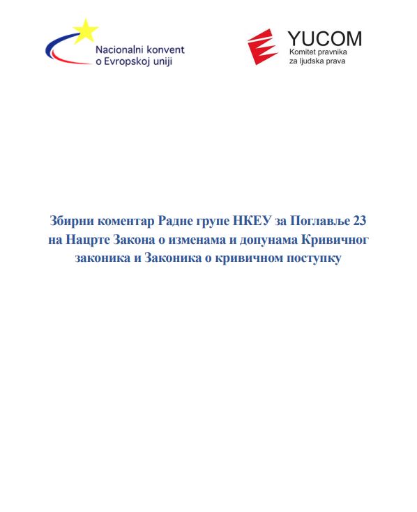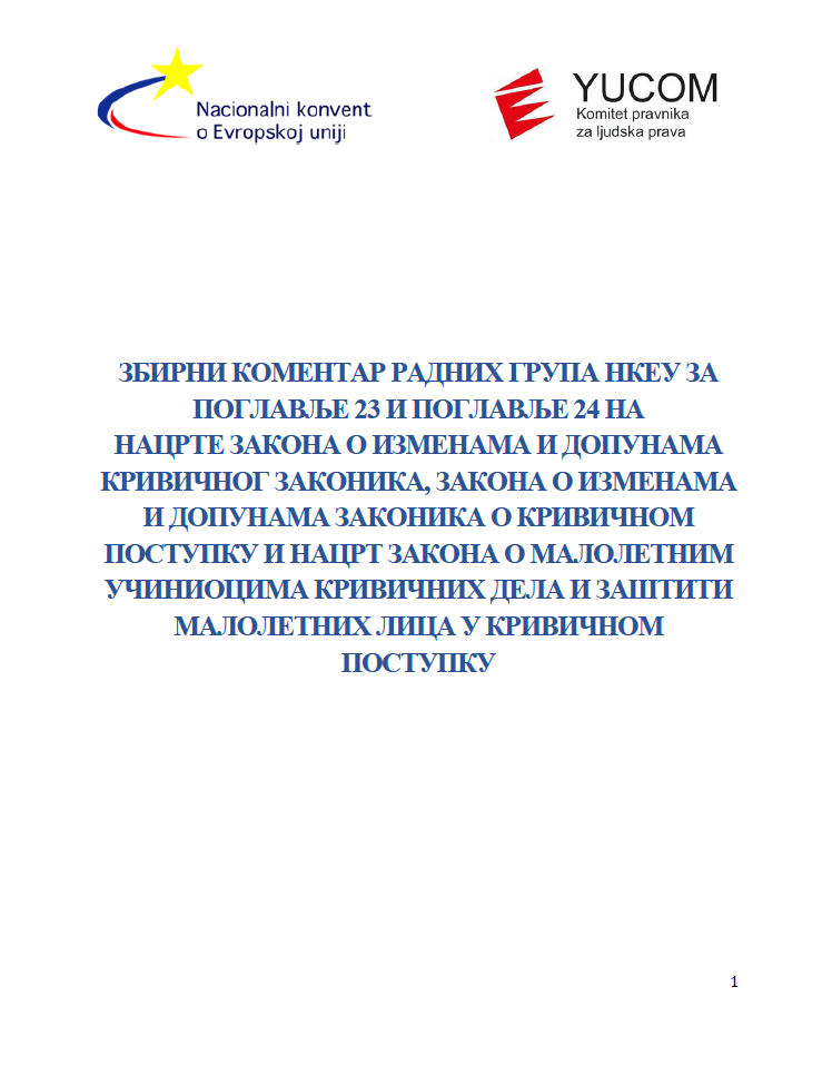 ЗБИРНИ КОМЕНТАР РАДНИХ ГРУПА НКЕУ ЗА ПОГЛАВЉЕ 23 И ПОГЛАВЉЕ 24 НА НАЦРТЕ ЗАКОНА О ИЗМЕНАМА И ДОПУНАМА КРИВИЧНОГ ЗАКОНИКА, ЗАКОНА О ИЗМЕНАМА И ДОПУНАМА ЗАКОНИКА О КРИВИЧНОМ ПОСТУПКУ И НАЦРТ ЗАКОНА О МАЛОЛЕТНИМ УЧИНИОЦИМА КРИВИЧНИХ ДЕЛА И ЗАШТИТИ МАЛОЛЕТНИХ ЛИЦА У КРИВИЧНОМ ПОСТУПКУ